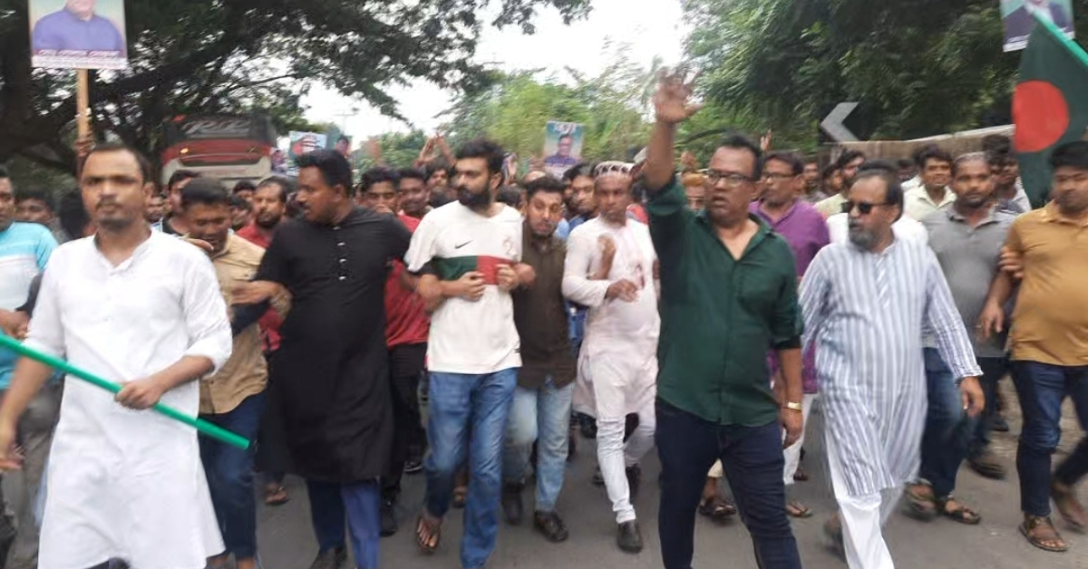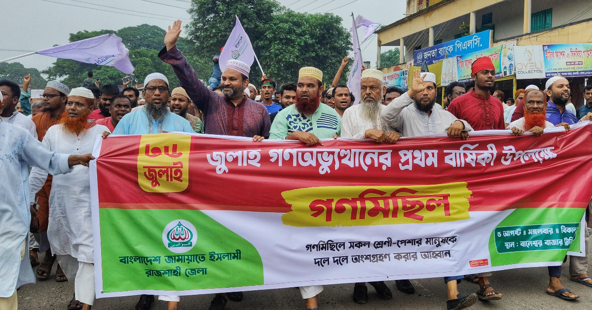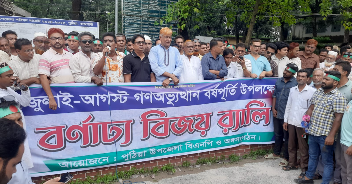 পুঠিয়ায় গণহত্যার বিচার ও শেখ হাসিনার ফাঁসির দাবিতে বিএনপি–যুবদলের বিক্ষোভ মিছিল