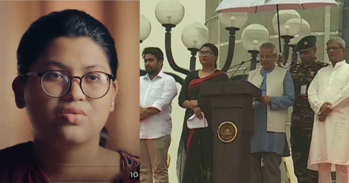 ‘জুলাই ঘোষণাপত্র’ পাঠের সময় ড. ইউনূসের পাশে থাকা কে এই তরুণী!